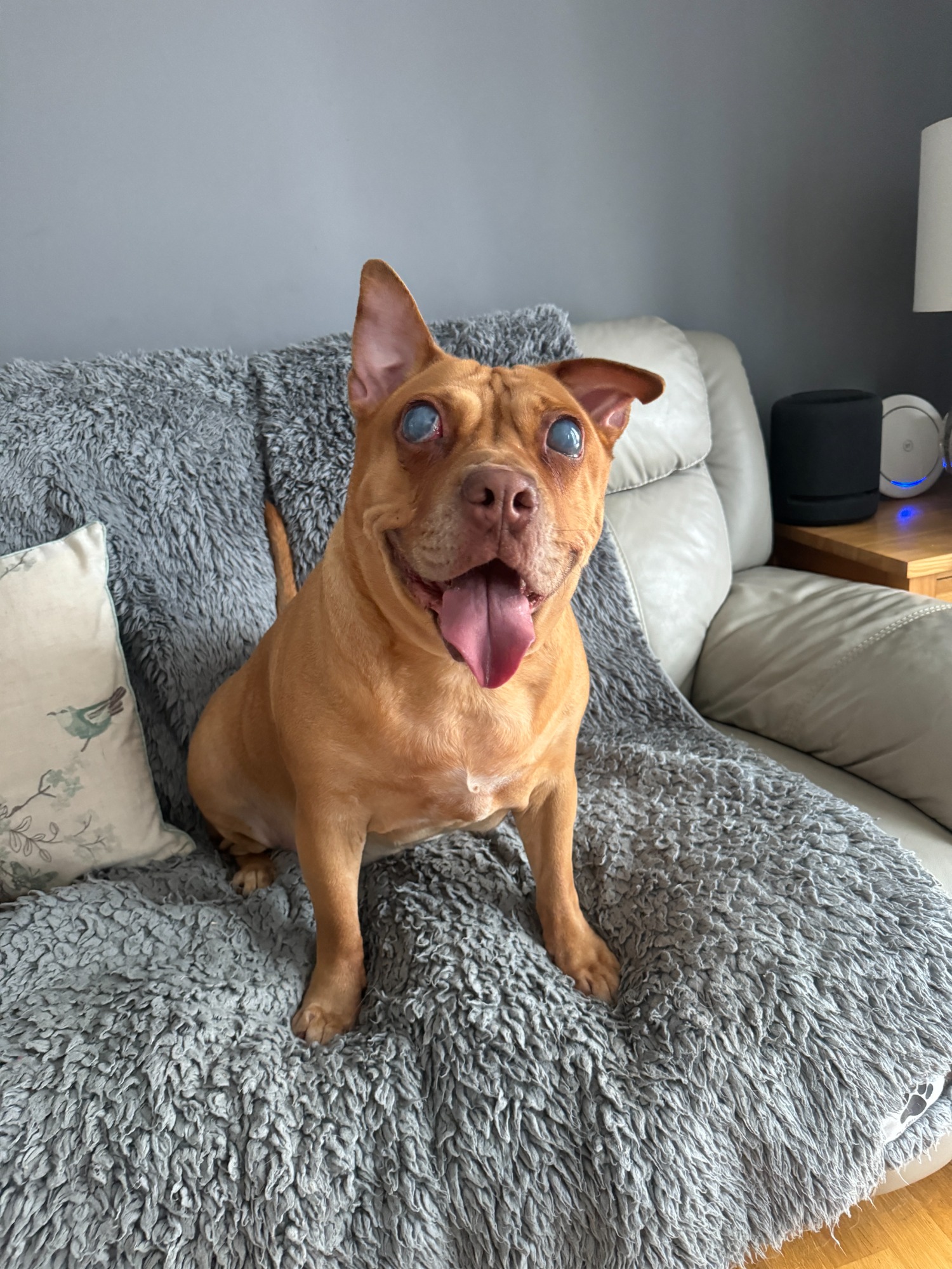 Tycho came into foster with us from RATS Animal Rescue, sadly his owner has passed away and the family couldn't look after him. Tycho is blind, but he manages really well.