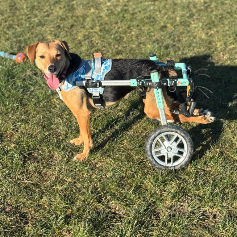 Disabled dogs can take longer to home, they often get overlooked which is sad because they have so much to give. Caring for a disabled dog can be quite straightforward, good routine is essential and bladder expression is simple and quick once you get the hang of it.